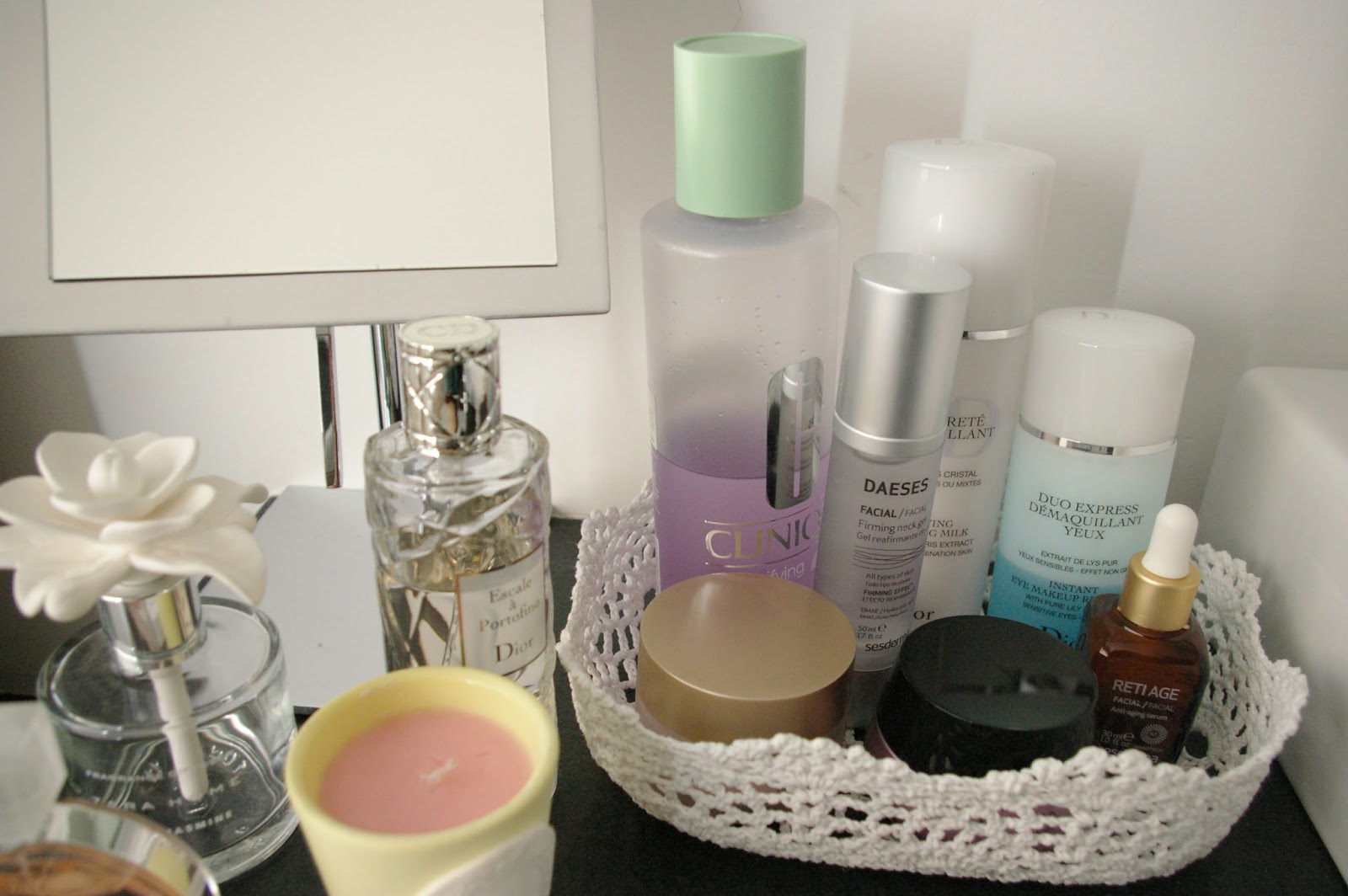 Como comentei no post sobre o livro da Vic Ceridono, hoje em dia não falto com as minhas rotinas. Se é verdade que vou experimentando produtos novos de vez em quando, relativamente a estes dois não o faço porque são os meus absolutos preferidos. Desmaquilhante de olhos Dior Duo Express Extrait de Lys Pur e o leite desmaquilhante Dior Pureté Extrait D´Iris Cristal. A loção que uso é da Clinique clarifying lotion 2.