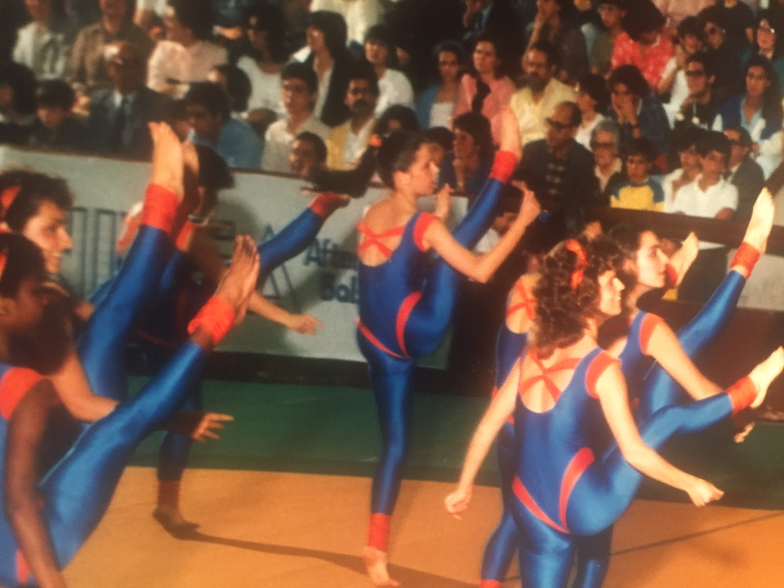 Um desses bons momentos foi, sem sombra de dúvida, a participação na Gymnaestrada (naquele ano, em Herning - Dinamarca) uma espécie de Jogos Olímpicos sem a componente competitiva. Na foto acima, eu (em pé) seguro a bandeira do evento no Sarau de Gala do GCP, que na altura se realizava sempre no mítico Pavilhão dos Desportos/ Carlos Lopes. Era sempre uma emoção segurar a bandeira, fosse a do GCP, da Gymnanestrada ou de Portugal. Sentíamo-nos motivadas e orgulhosas por fazê-lo <3